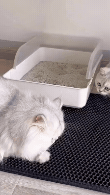 Cada vez que o seu gato sai da caixa, o tapete ajuda a reter parte dos grãos que iriam parar no chão.